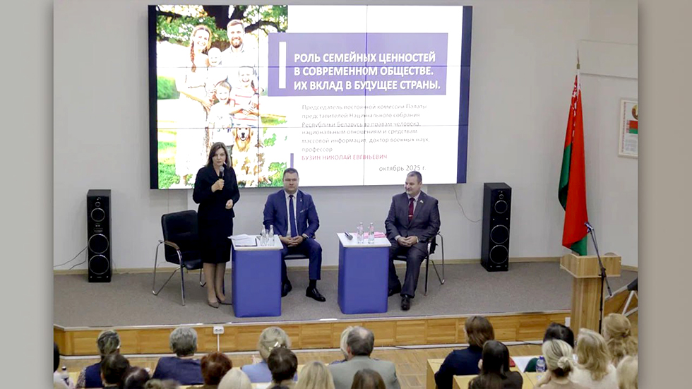 Крепкая семья – основа сильного государства. В рамках Единого дня информирования населения на тему «Роль семейных ценностей в современном обществе» Подробнеев Академии образования состоялась встреча с председателем постоянной комиссии Палаты представителей Национального собрания Республики Беларусь по правам человека, национальным отношениям и средствам массовой информации, доктором военных наук, профессором, Бузиным Николаем Евгеньевич и председателем Советской районной организации города Минска РОО «Белая Русь», Кудиным Вадимом Геннадьевичем.Мероприятие собрало представителей академического сообщества, которые активно обсудили актуальные аспекты семейных ценностей в контексте современных вызовов общества. Особое внимание было уделено церемонии вручения членских билетов РОО «Белая Русь» сотрудникам Академии образования, что символизировало их вовлечение в общественную жизнь и поддержку инициатив объединения. |