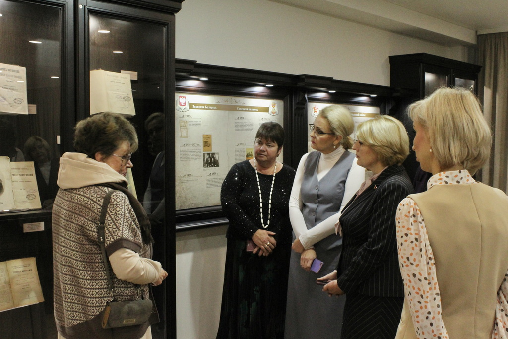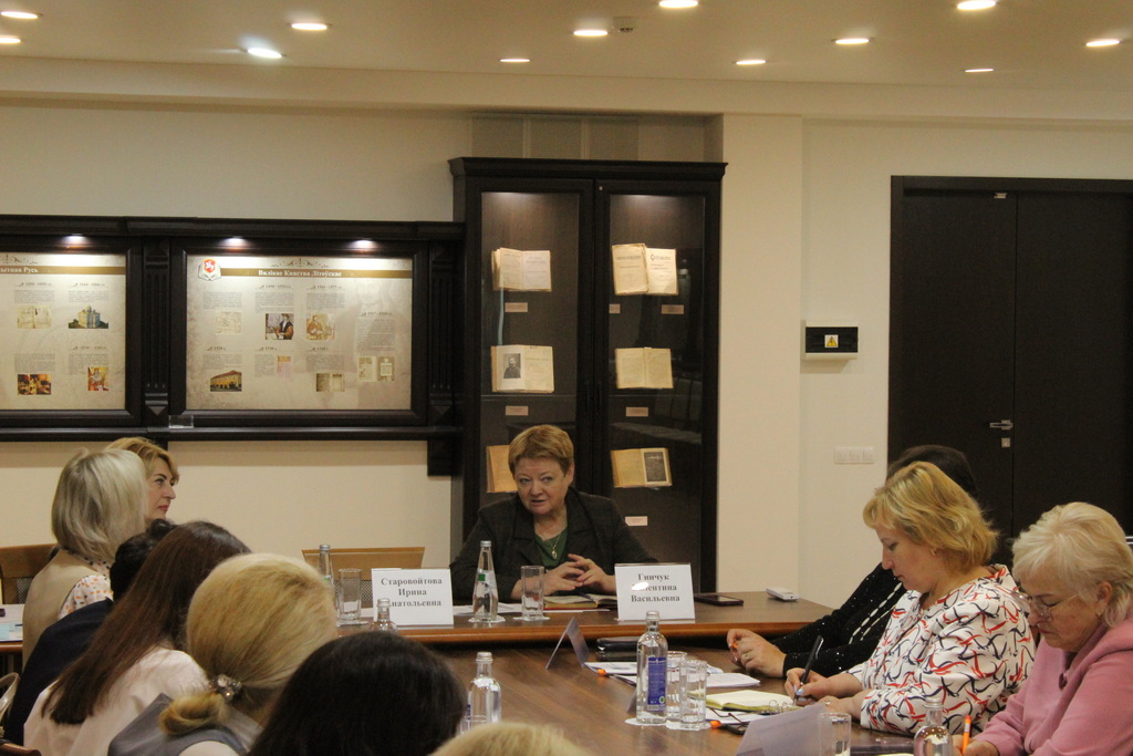 Большую заинтересованность у участников семинара вызвала музейная экспозиция «Учебная книга в истории образования». Экскурсию провела главный научный сотрудник лаборатории гуманитарного образования научно-исследовательского центра Академии образования, доктор педагогических наук, профессор Галина Ивановна Николаенко.