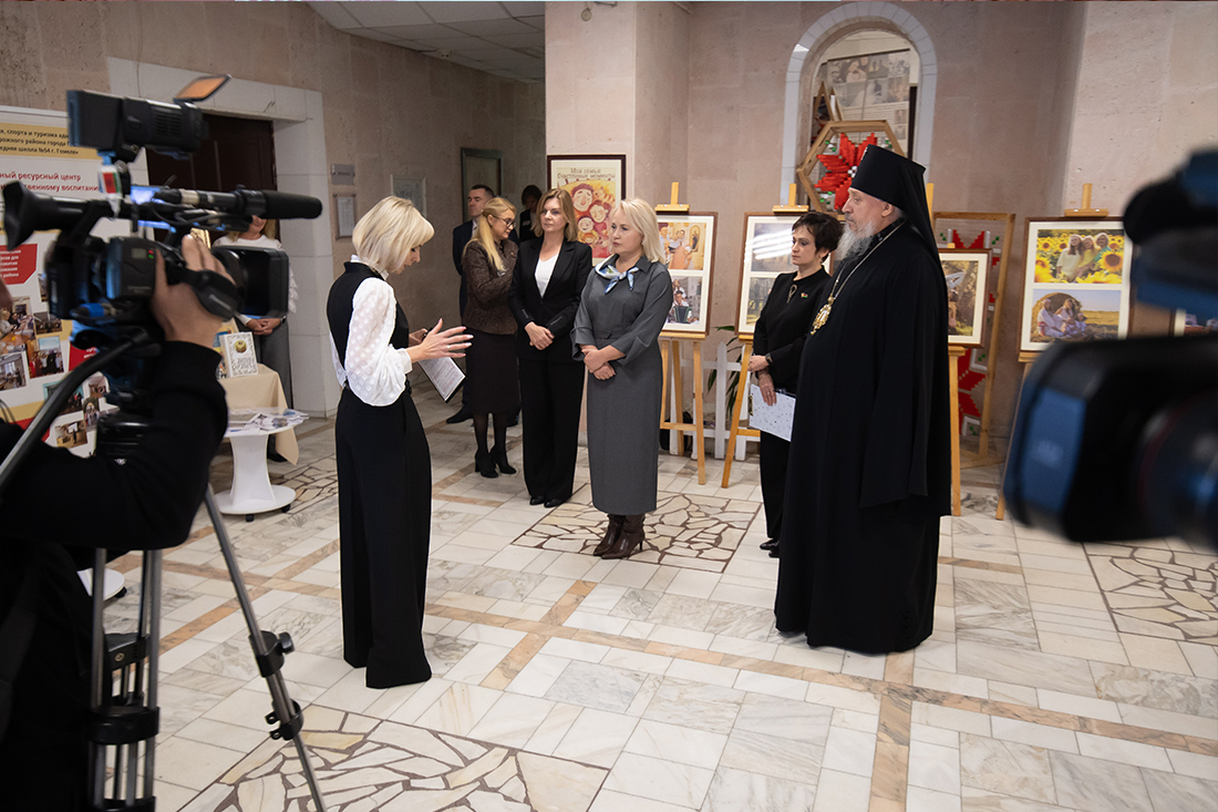 Участники диалоговой площадки также смогли ознакомиться с экспонатами выставки, отражающими опыт работы ресурсных центров учреждений образования Гомельской области, а также с передвижными выставками, представленными Гомельской епархией.