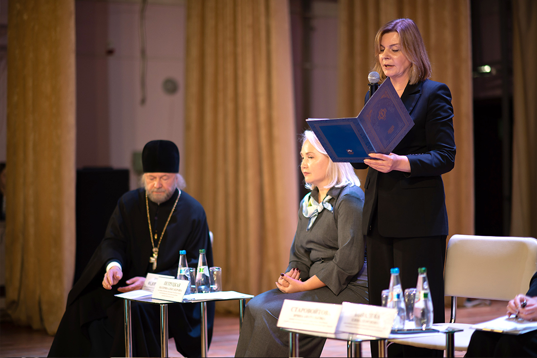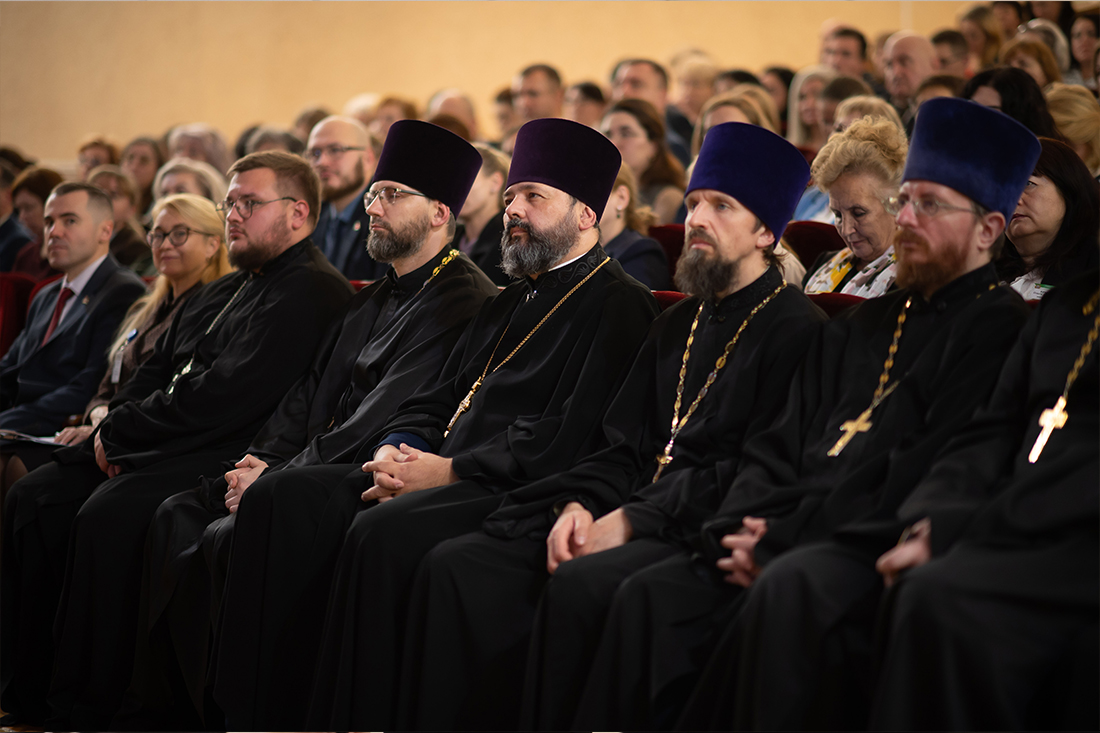 Особая сложность воспитательного процесса в современных условиях была отмечена в выступлении протоиерея Федора Повного, председателя Синодального отдела Белорусской Православной Церкви по сотрудничеству со светскими учреждениями образования. «Задача общества – выработать те ценности, которые позволят нам сохранить человеческое общение, задача педагогов – воспитать личность на этих ценностях, задача священника – рассказать о высоком предназначении человека. И наша сегодняшняя встреча – это совместный поиск ответов на вызовы времени», – подчеркнул председатель Синодального отдела.