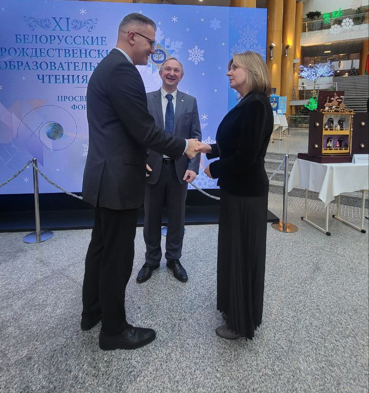 2 декабря 2025 года ректор государственного учреждения образования «Академия образования», кандидат педагогических наук, доцент Ирина Анатольевна Старовойтова приняла участие в торжественном открытии XI Белорусских образовательных Рождественских чтений и в работе пленарного заседания по теме «Просвещение и современность: формирование личности и вызовы времени», которое состоялось в Национальной библиотеке Беларуси. В названном мероприятии участвовали также научный консультант Республиканского ресурсного центра по духовно-нравственному и патриотическому воспитанию обучающихся ГУО «Академия образования», доктор педагогических наук, профессор Галина Ивановна Николаенко и заведующий Республиканским ресурсным центром Ольга Валерьевна Кузьмич.