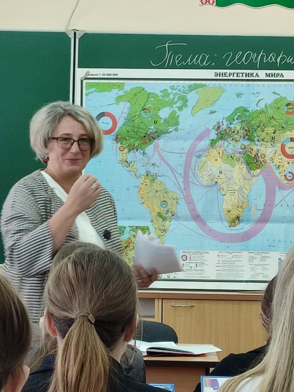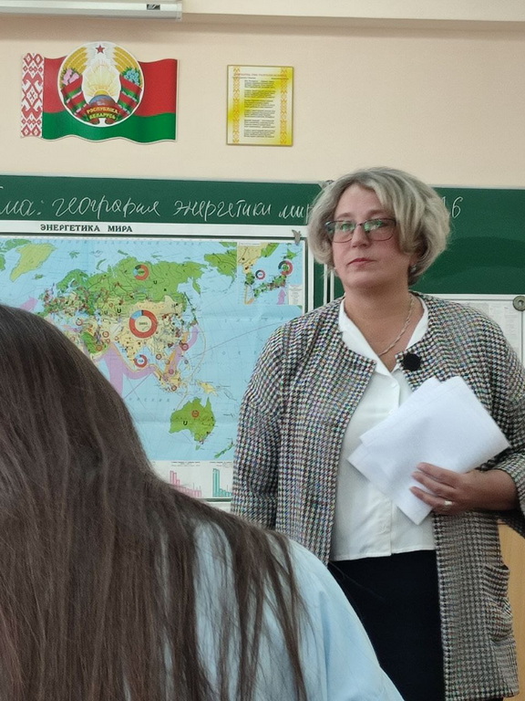 Учителем географии высшей квалификационной категории Саникович Жанной Петровной был проведен открытый урок в X классе по теме «География энергетики мира». Участники мероприятия провели анализ урока, где обсудили содержание учебного материала и иные критерии урока в контексте реализации дифференцированного подхода при обучении географии.