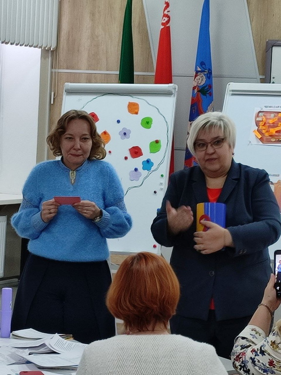 Шамшура Валентина Владимировна, директор государственного учреждения образования «Средняя школа № 46 г. Витебска имени И.Х. Баграмяна», сотрудники и учащиеся школы рассказали участникам занятия о своем учреждении образования.
