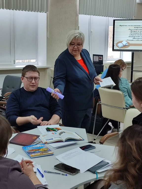 Учитель географии высшей квалификационной категории Виноградова Лилия Александровна предложила мастер-класс «Современные приемы формирования умения у учащихся работать с вопросами на географическом материале», где поделилась актуальными приемами дифференциации учащихся и вовлечения их в учебную деятельность на уроках географии.