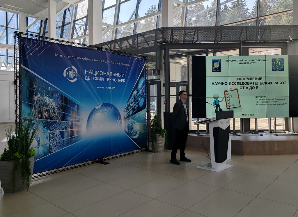 Национальный детский технопарк продолжает реализацию республиканского образовательного проекта «Наука начинается с учителя». Мероприятие направлено на популяризацию достижений белорусских ученых, формирование у молодежи мотивации к занятию научной деятельностью, поддержку одаренных детей в области научно-технического творчества, а также развитие интереса к инженерно-техническим профессиям, инновационной и исследовательской деятельности. Спикер выступил перед аудиторией с содержательной лекцией на тему «Оформление научно-исследовательских работ от А до Я», в которой подробно раскрыл методологические подходы и практические тонкости подготовки учащихся к конкурсным мероприятиям и научно-практическим конференциям. Знакомство с деятельностью технопарка продолжилось в современных лабораториях.