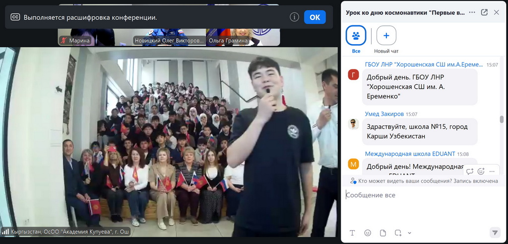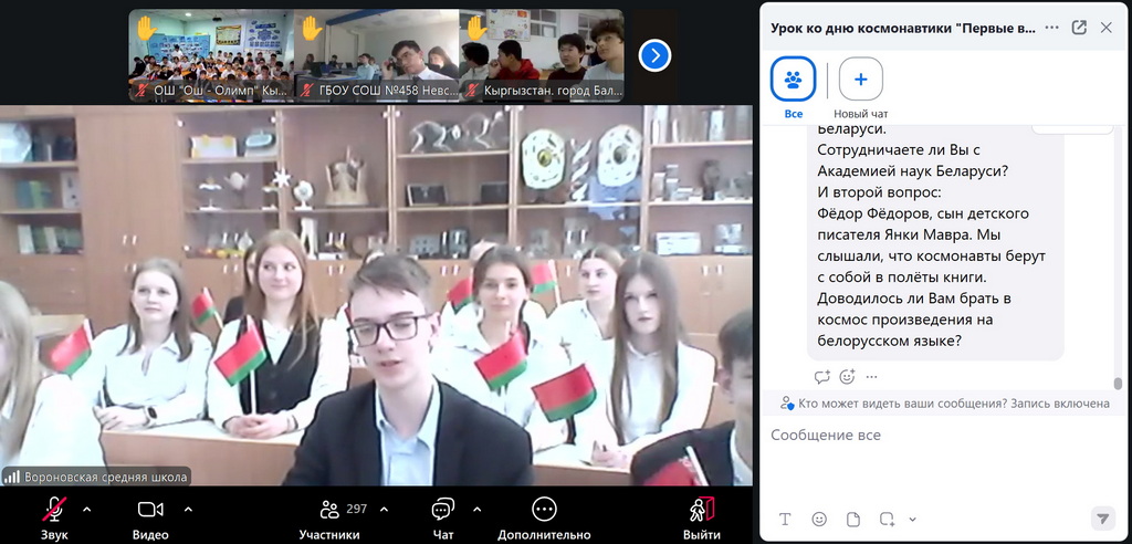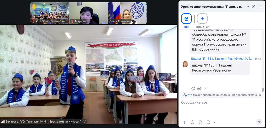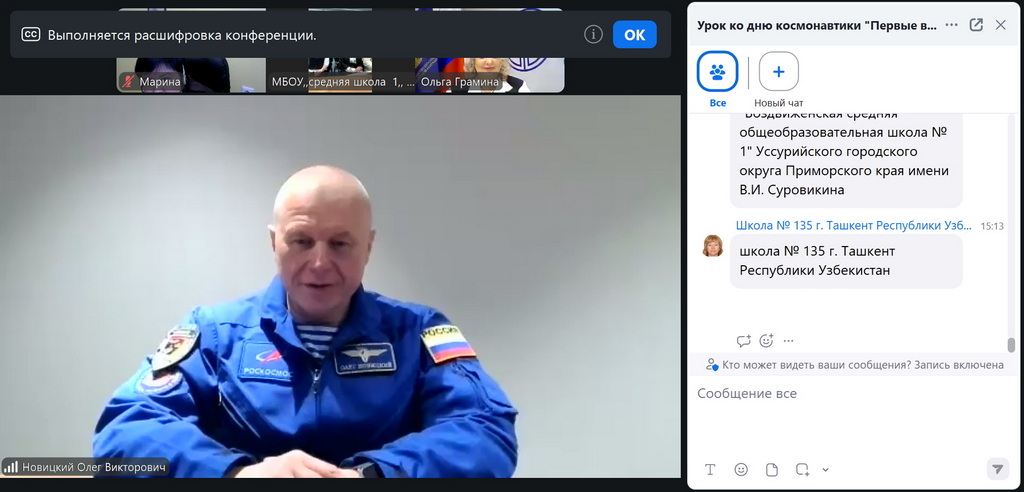 На основании плана мероприятий Ассоциации школ Российской Федерации и Республики Беларусь на 2026 год 9 апреля состоялся международный онлайн-урок «Первые в космосе», на котором на вопросы учащихся отвечал летчик-космонавт, Герой России Олег Новицкий, который совершил четыре космических полета, три выхода в открытый космос и провел на орбите 545 суток.