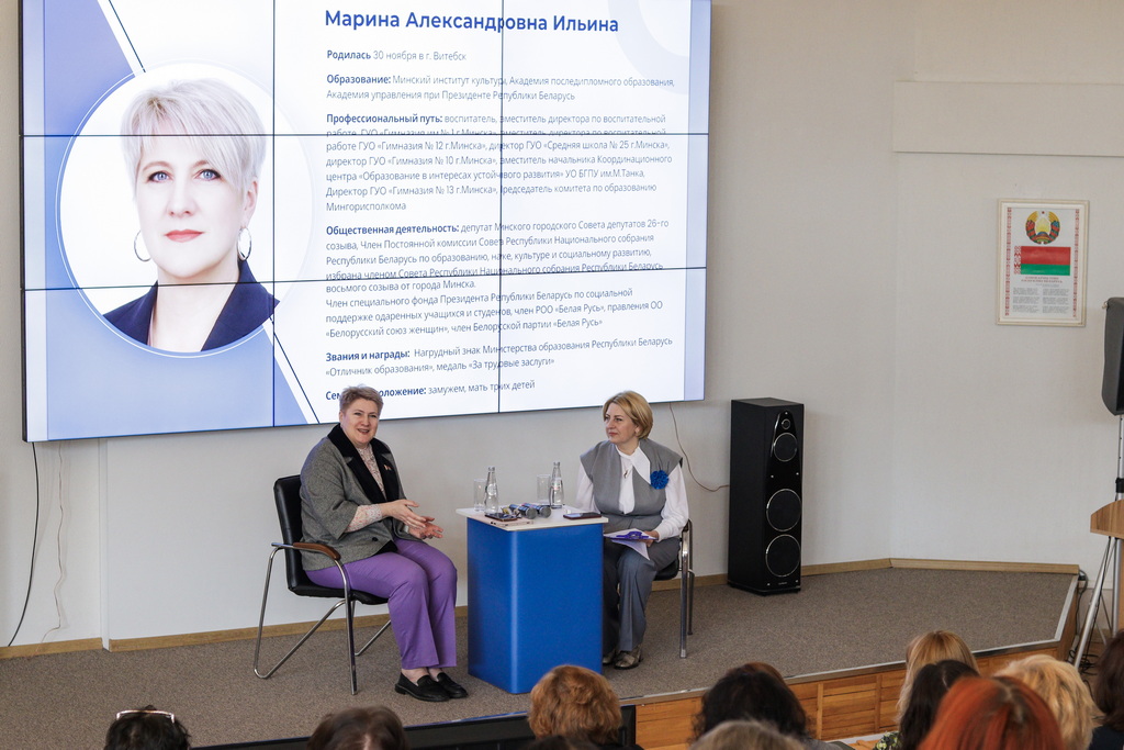 14 апреля 2026 года в рамках серии мероприятий, приуроченных к Году белорусской женщины, в Академии образования прошла встреча с председателем комитета по образованию Мингорисполкома Мариной Александровной Ильиной.