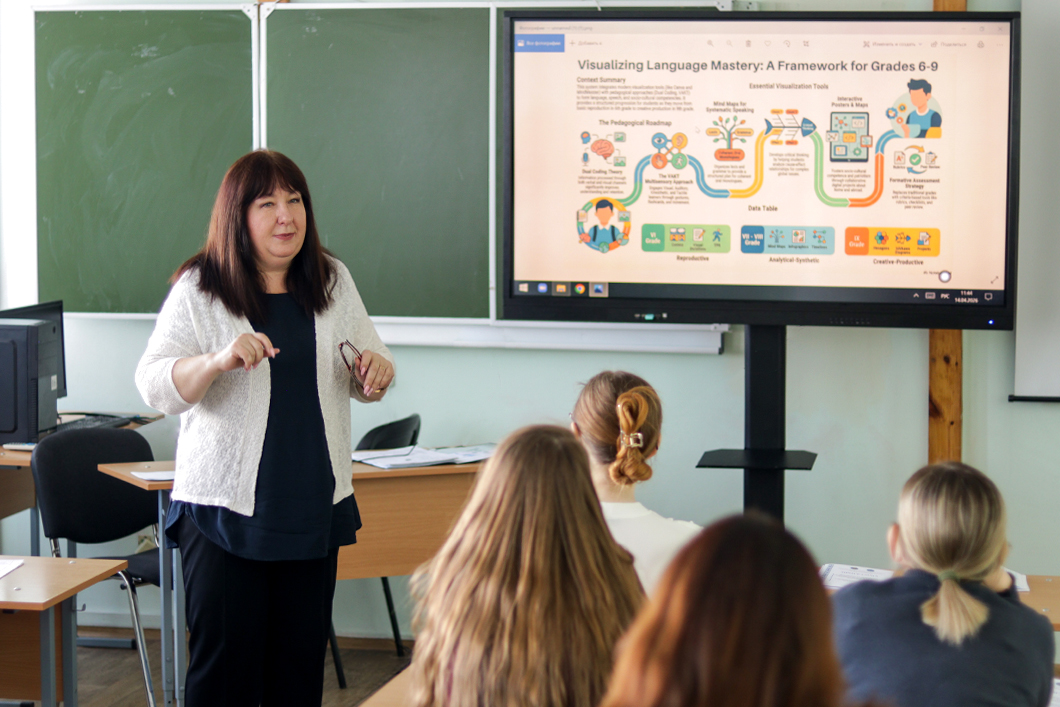 Участники семинара рассмотрели визуализацию не просто как иллюстративный материал, а как эффективный педагогический инструмент, способствующий развитию речевых навыков. В ходе работы были представлены различные виды визуальных опор: интеллект-карты, инфографика, кластеры, пиктограммы и комиксы.