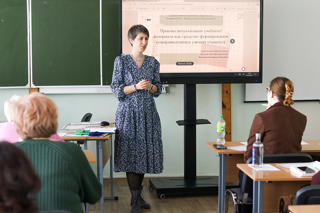 Екатерина Юрьевна Алексеюк, учитель английского языка высшей квалификационной категории государственного учреждения образования «Гимназия № 35 г. Минска имени Е.И.Мирковского», представила приемы визуализации учебного материала как средства формирования коммуникативных умений учащихся.