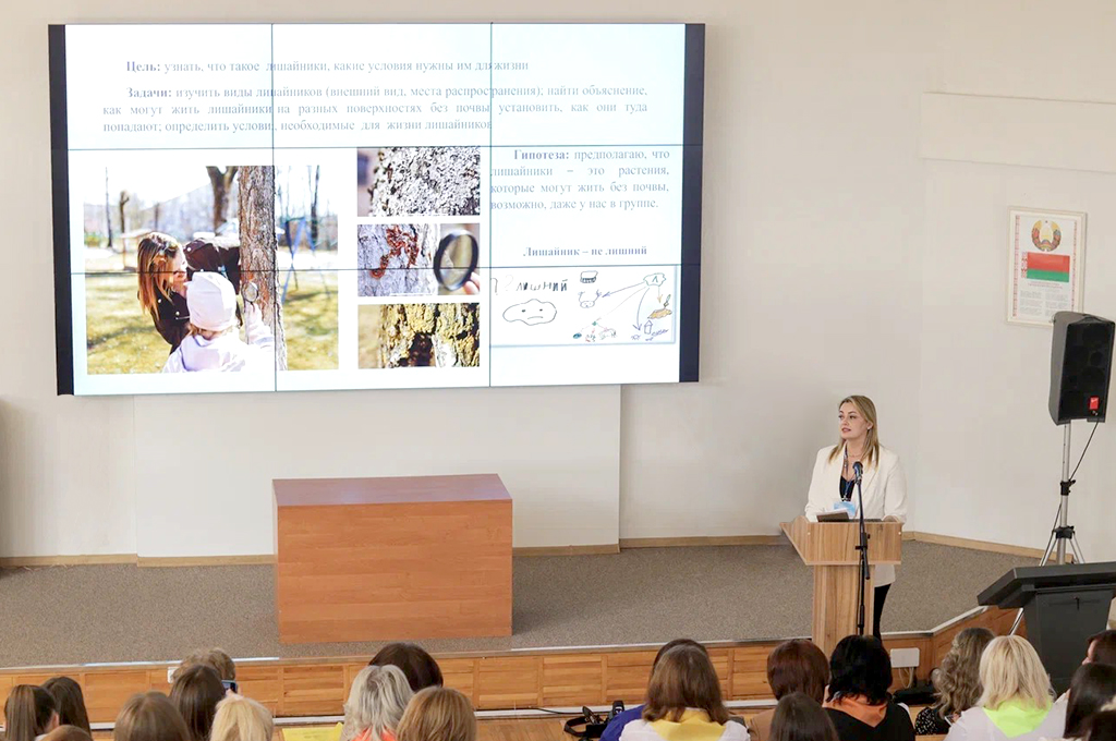 23 апреля состоялось торжественное открытие выставки «Юные исследователи», в рамках которой призеры и победители второго этапа представили свои исследовательские проекты. С приветственным словом к участникам мероприятия обратилась заместитель начальника Главного управления общего среднего и дошкольного образования — начальник отдела дошкольного образования Министерства образования Республики Беларусь, кандидат педагогических наук Альбина Леонидовна Давидович.