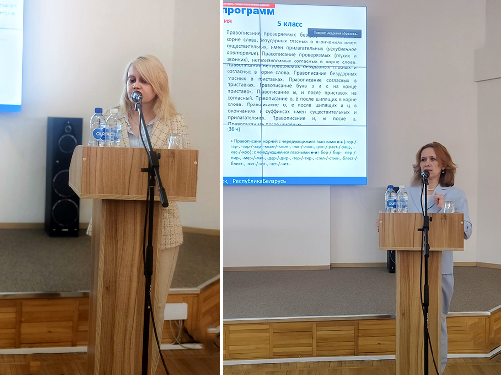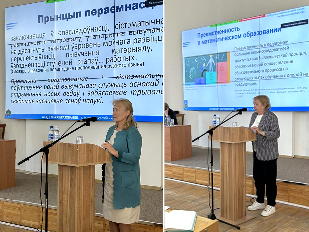 Обеспечение преемственности учебных пособий I и II ступеней общего среднего образования с учетом анализа действующих национальных учебников и учебных пособий было рассмотрено на примере учебных предметов «Математика», «Русский язык», «Беларуская мова». Спикерами по данному вопросу выступили: